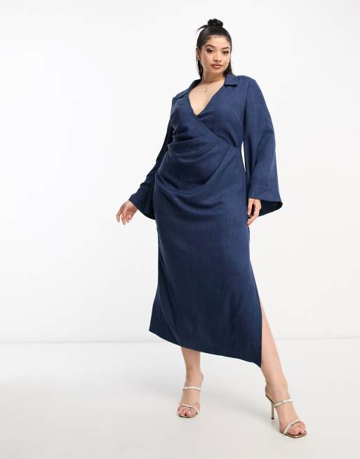 ASOS DESIGN Curve flute sleeve collared wrap midi dress with Very well made.