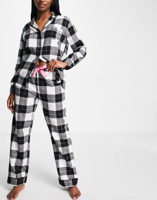 New Look flannel plaid camp collar pajama set in black Very well made.