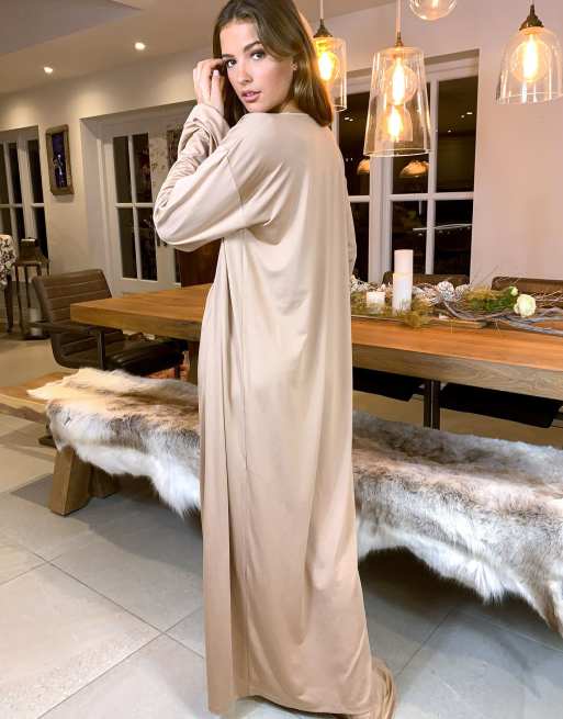 ASOS LUXE Lounge slinky puff sleeve maxi gown in beige Very well made.