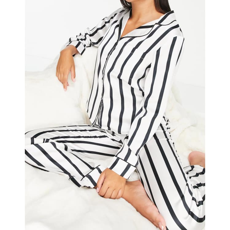 ASOS DESIGN satin stripe shirt pants pajama set in black white Very well made.
