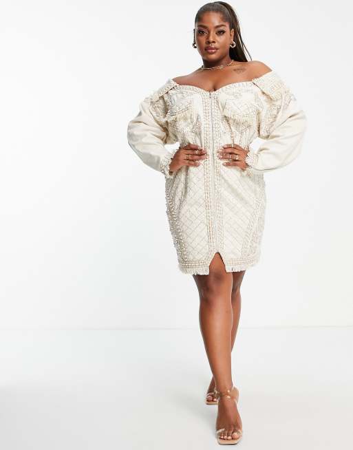ASOS DESIGN Curve Robe smoking oversize en jean avec paules d nud es et ornements en perles Very well made.