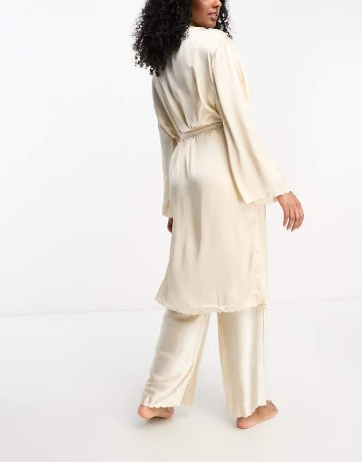 ASOS DESIGN premium satin embroidered midi robe in cream Very well made.