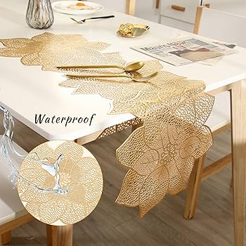 FAVE Gold Table Runners 36 Inches Heat Resistant Table Runner Flower Shaped Vinyl Table Runner Waterproof Washable Table Mats Summer Table Runner for Very well made.