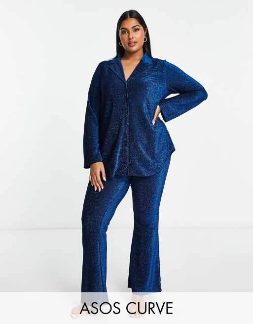 ASOS DESIGN Curve glitter shirt pants pajama set in blue Very well made.