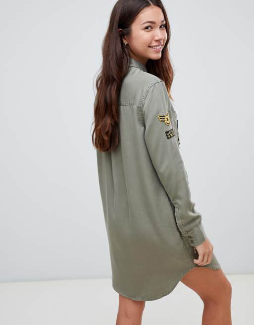 Femme Robe unie courte en maille col roul mati re laineuse Superdry Kaki Robes Vintage Plus Very well made.