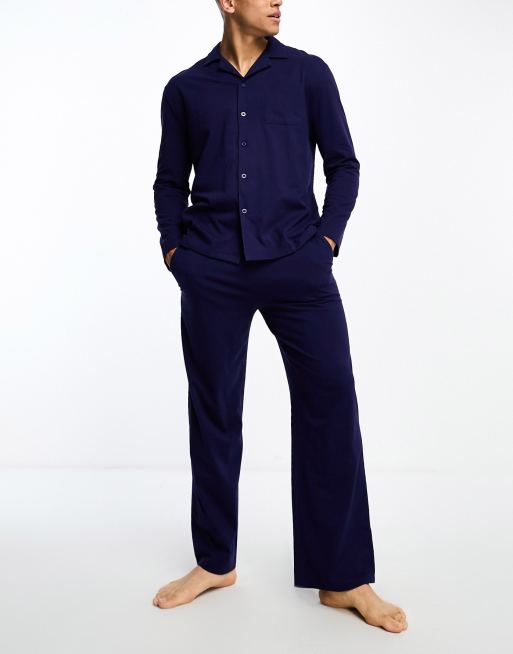ASOS DESIGN pajama set with long sleeve shirt and pants in navy jersey Very well made.