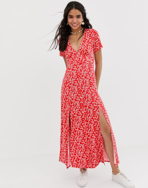 ASOS DESIGN Robe longue boutonn e sur le devant avec fentes et imprim petites fleurs Very well made.