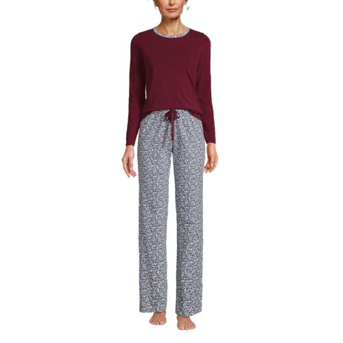 Lands End Women s Pajama Set Knit Long Sleeve T Shirt and Flannel Very well made.