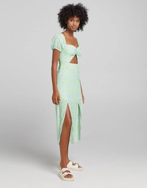Bershka Robe mi longue d coupe et motif fleuri Vert satin Very well made.
