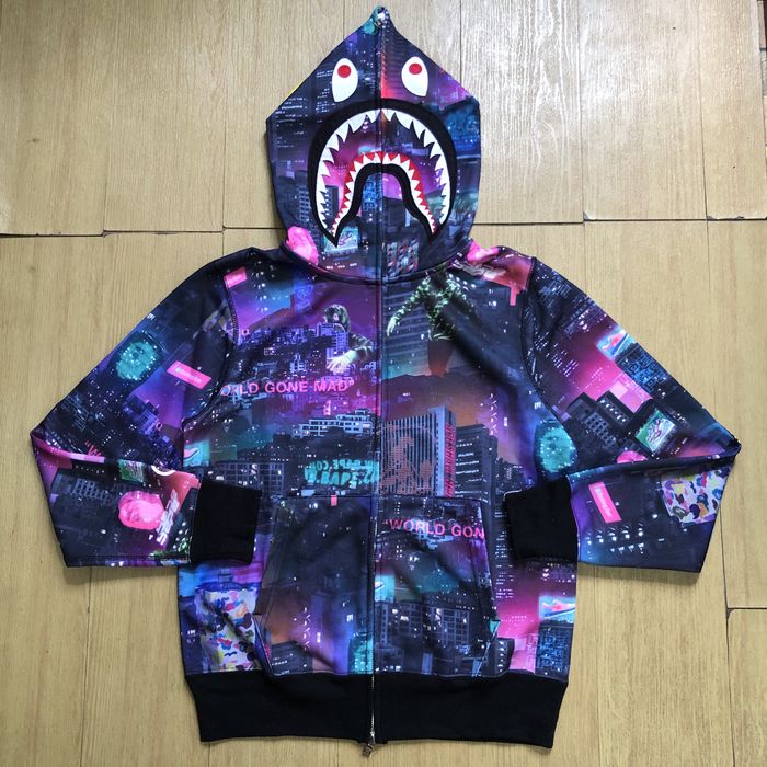 Bape Neon Tokyo Shark Wide Full Zip Hoodie Grailed Very well made.
