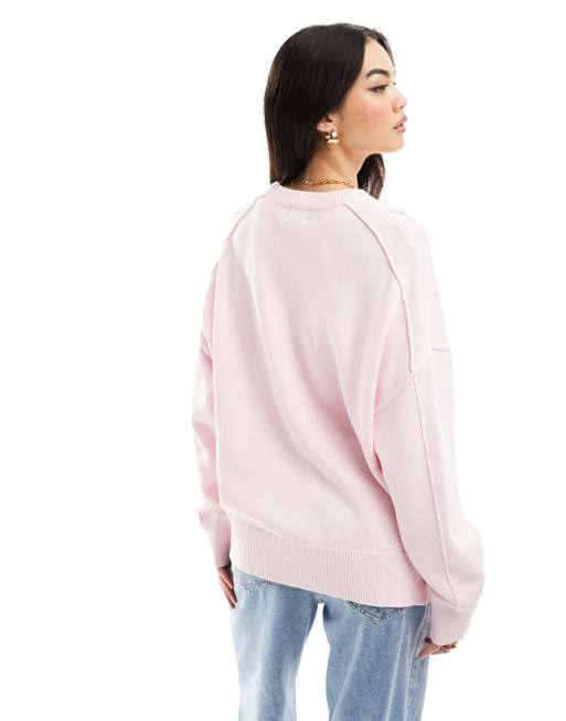 ASOS DESIGN crew neck oversized sweater in pink Very well made.