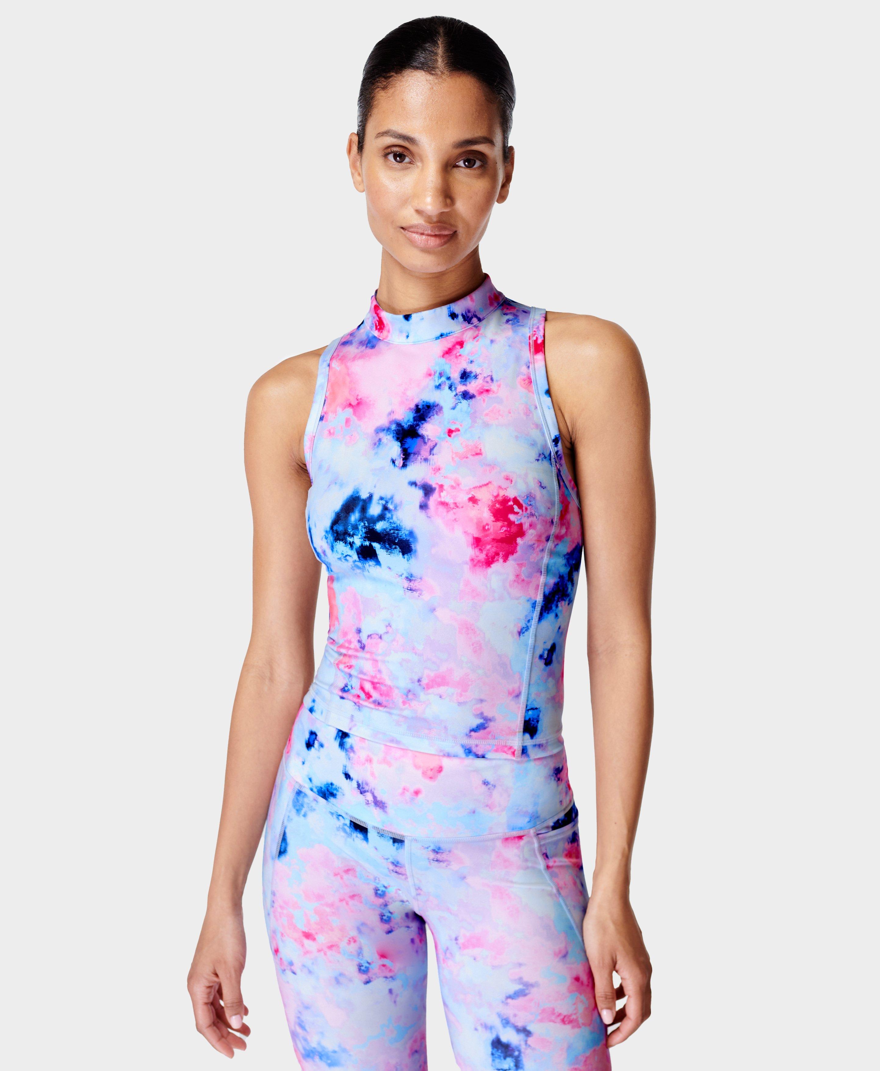 Power Zip Back Workout Tank Pink Acid Spray Dye Print Women s Very well made.