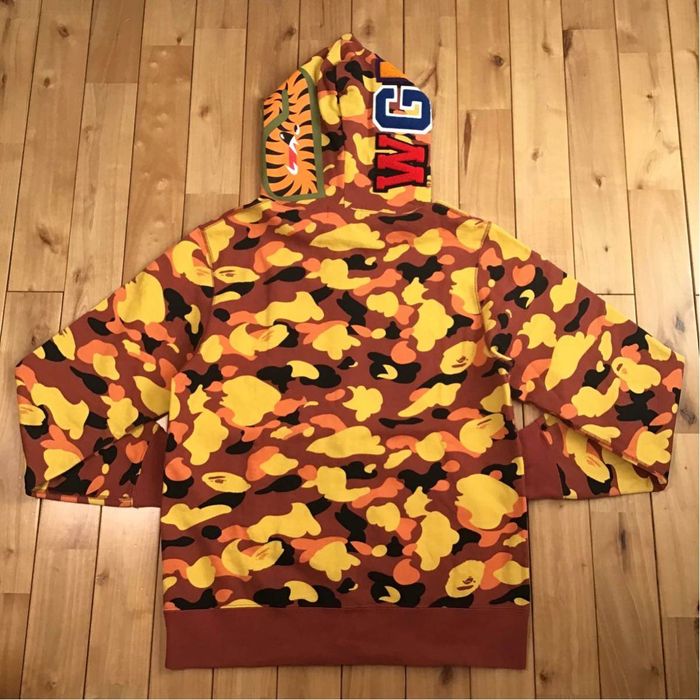 A Bathing Ape 2016 Orange Camo Shark Hoodie Size Small Condition Very well made.