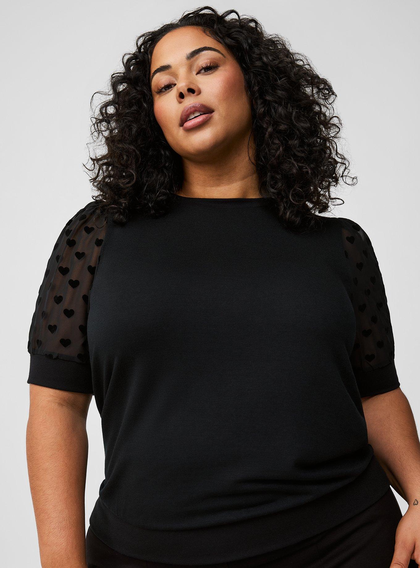 Plus Size Lightweight French Terry Crew Neck Lace Short Sleeve Very well made.
