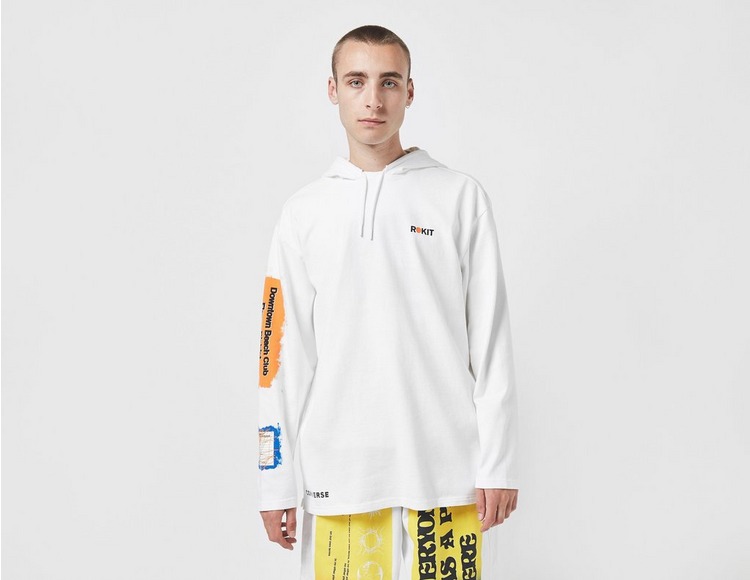 Converse Rokit Sweatshirt Hoodie Mens Small Long Sleeve Drawstring Graphic White Very well made.