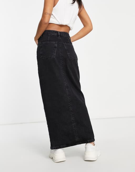ASOS DESIGN Petite Jupe longue en denim de coton m lang style ann es 90 Noir d lav BLACK Very well made.
