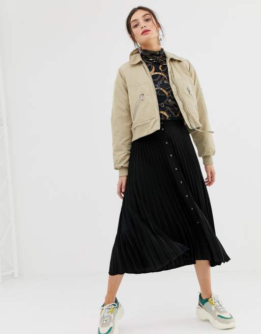 Stradivarius Jupe pliss e mi longue boutonn e l avant Noir Very well made.