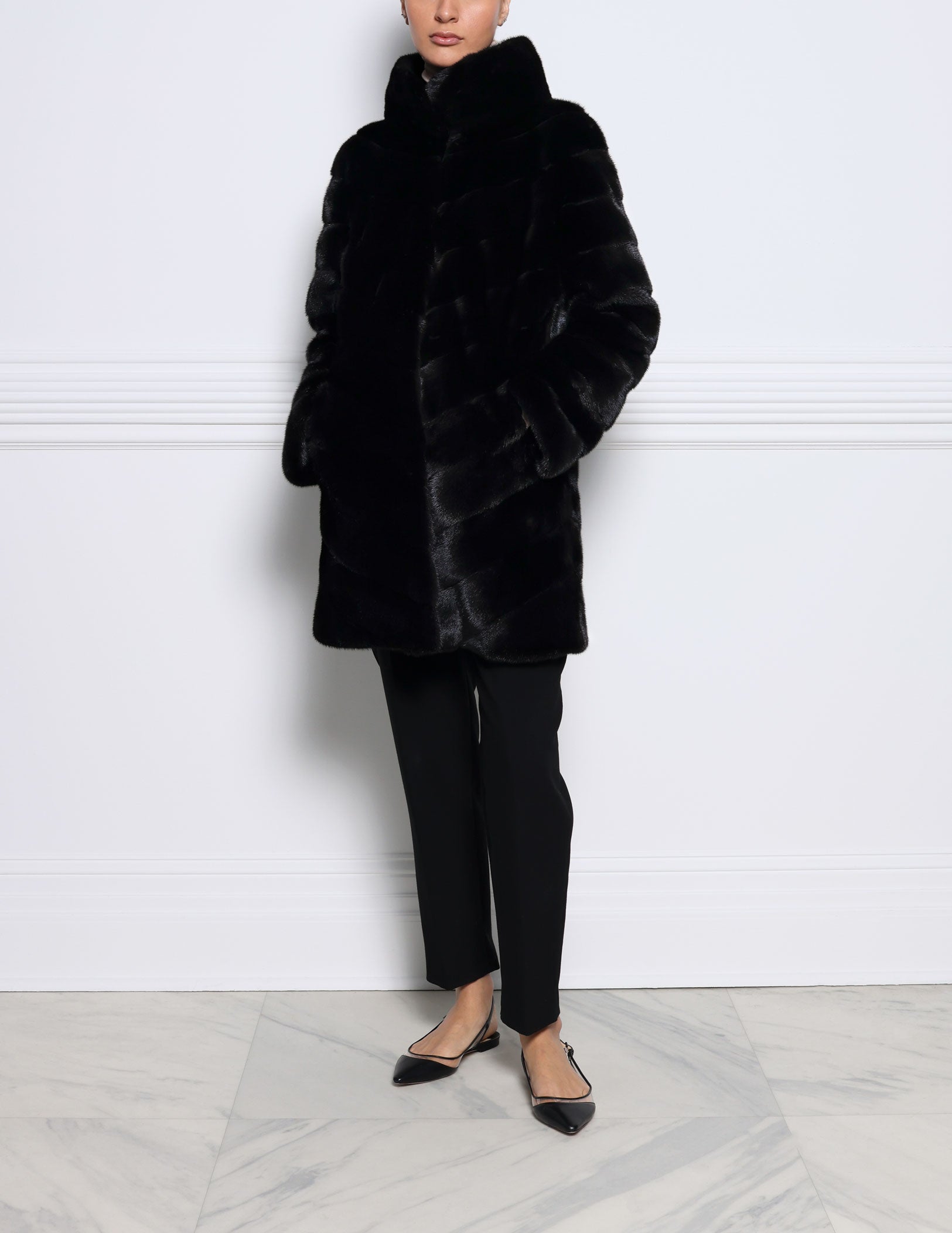 Black mink coat with fox collar Ciolini model Casa de blanuri MG Very well made.