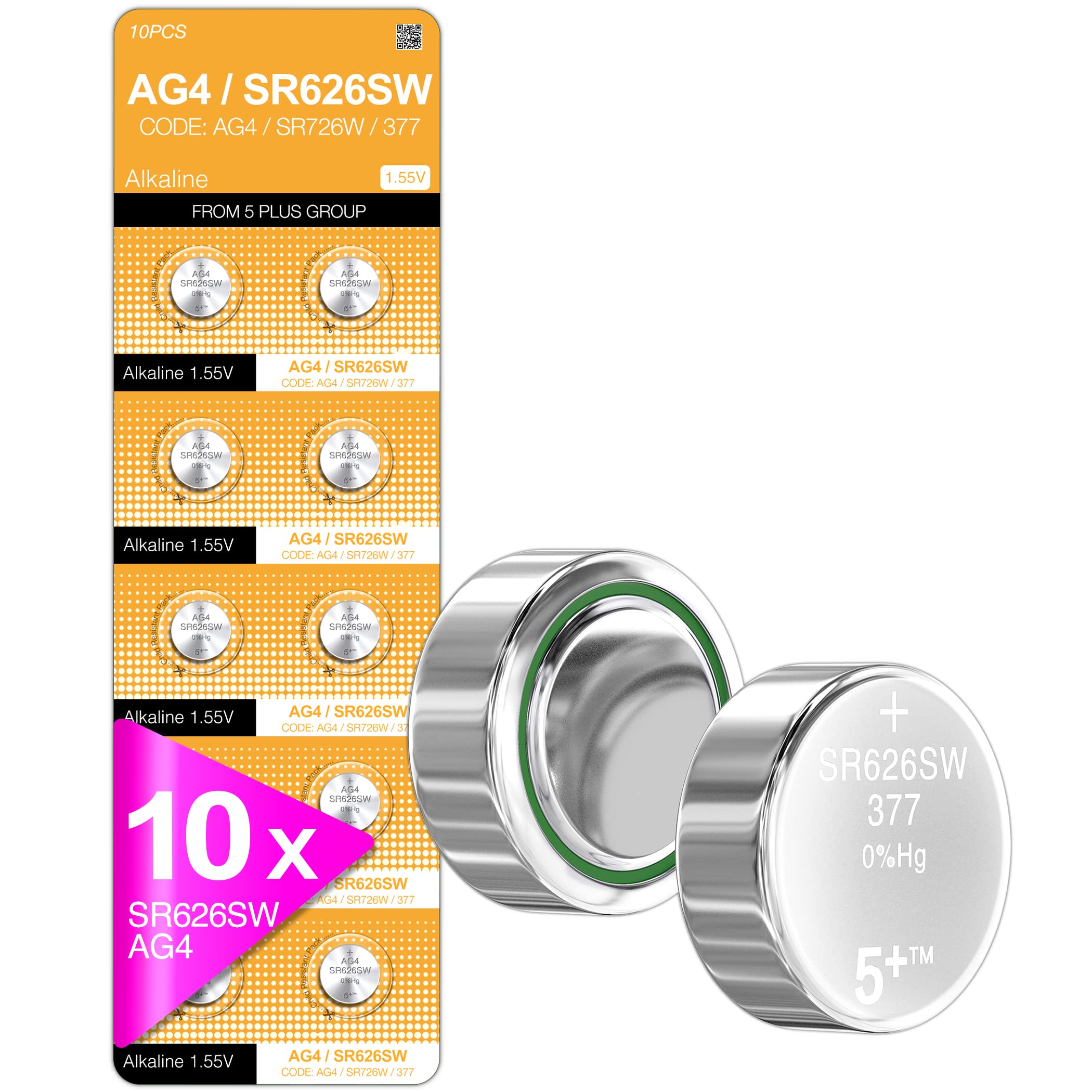 5Plus 10 Pcs AG4 LR626 377 0 Hg 1.5V Button Cell Watch Batteries Coin Cell Batteries Suitable For Keyfobs Scales Wearables And Other Devices Very well made.