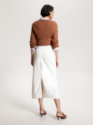 Jupe mi longue en denim Blanc Tommy Hilfiger Very well made.