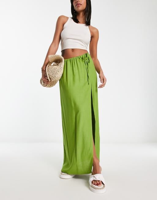 ASOS DESIGN Jupe longue en lin avec fente haute Vert Very well made.
