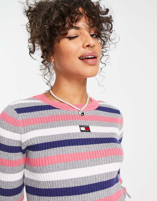 Tommy Jeans flag logo crew neck rib sweater in multi stripe ASOS Very well made.