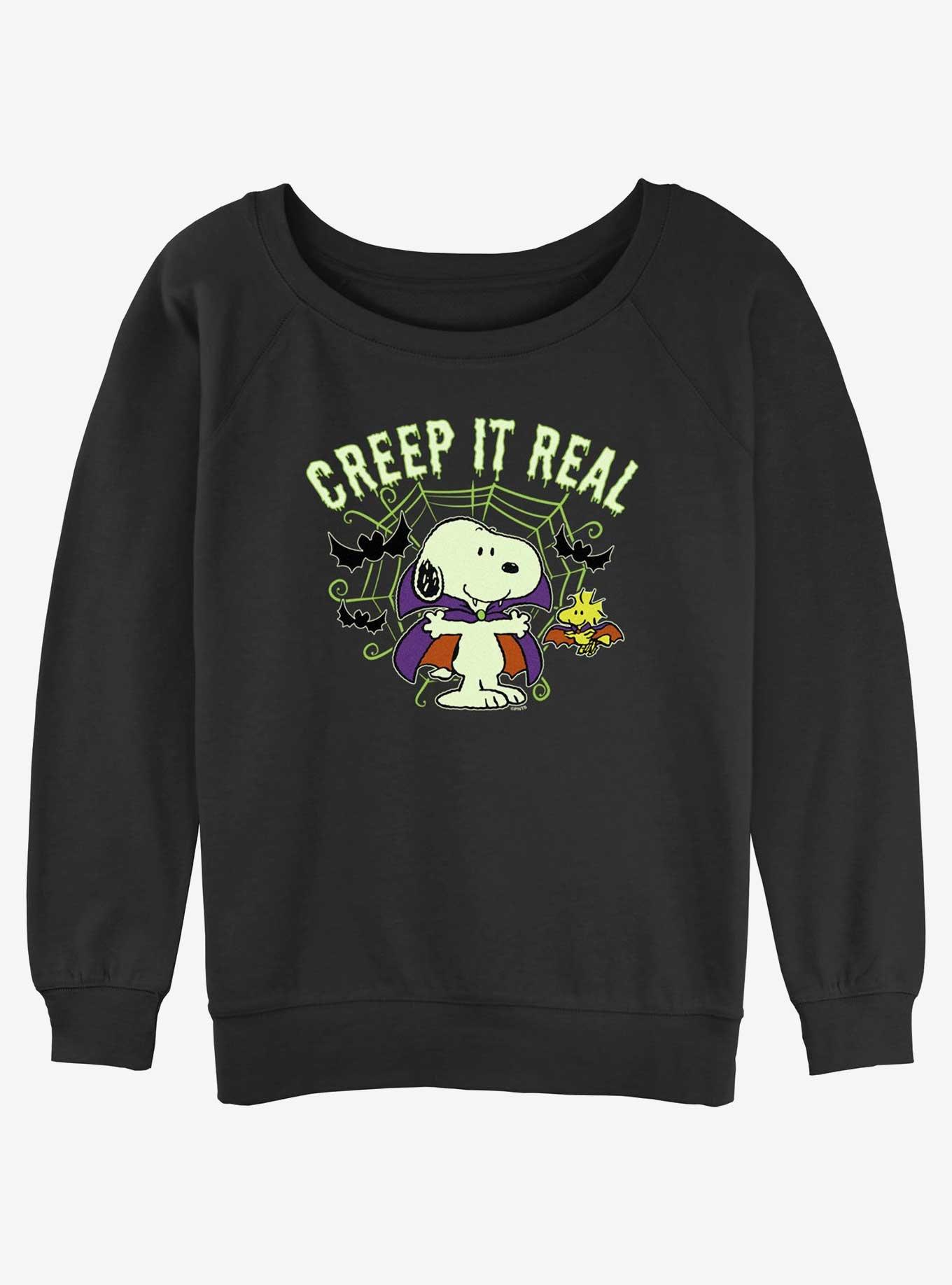 Peanuts Creep It Real Snoopy Girls Slouchy Sweatshirt BLACK Very well made.