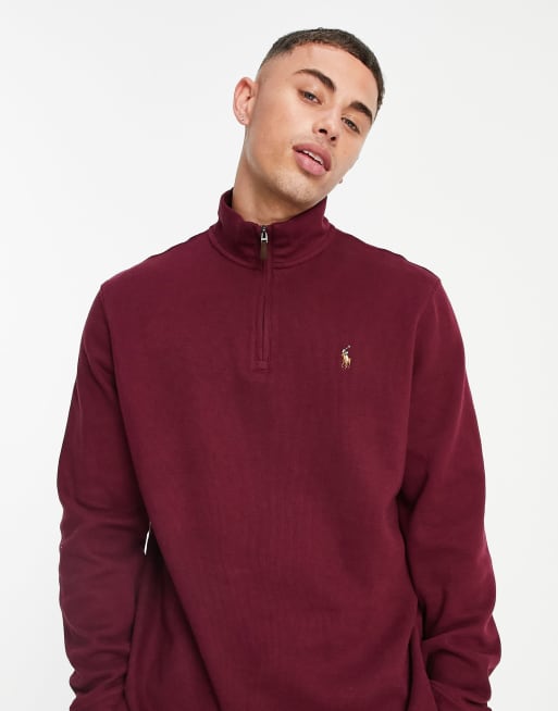 Polo Ralph Lauren icon logo half zip sweatshirt in burgundy Very well made.