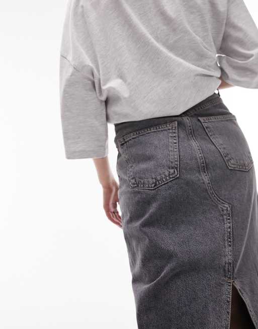 Topshop Petite Jupe colonne longue en jean Gris fonc ASOS Very well made.