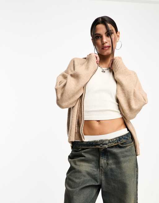Cotton On slouchy knit zip up hoodie in shortbread Very well made.