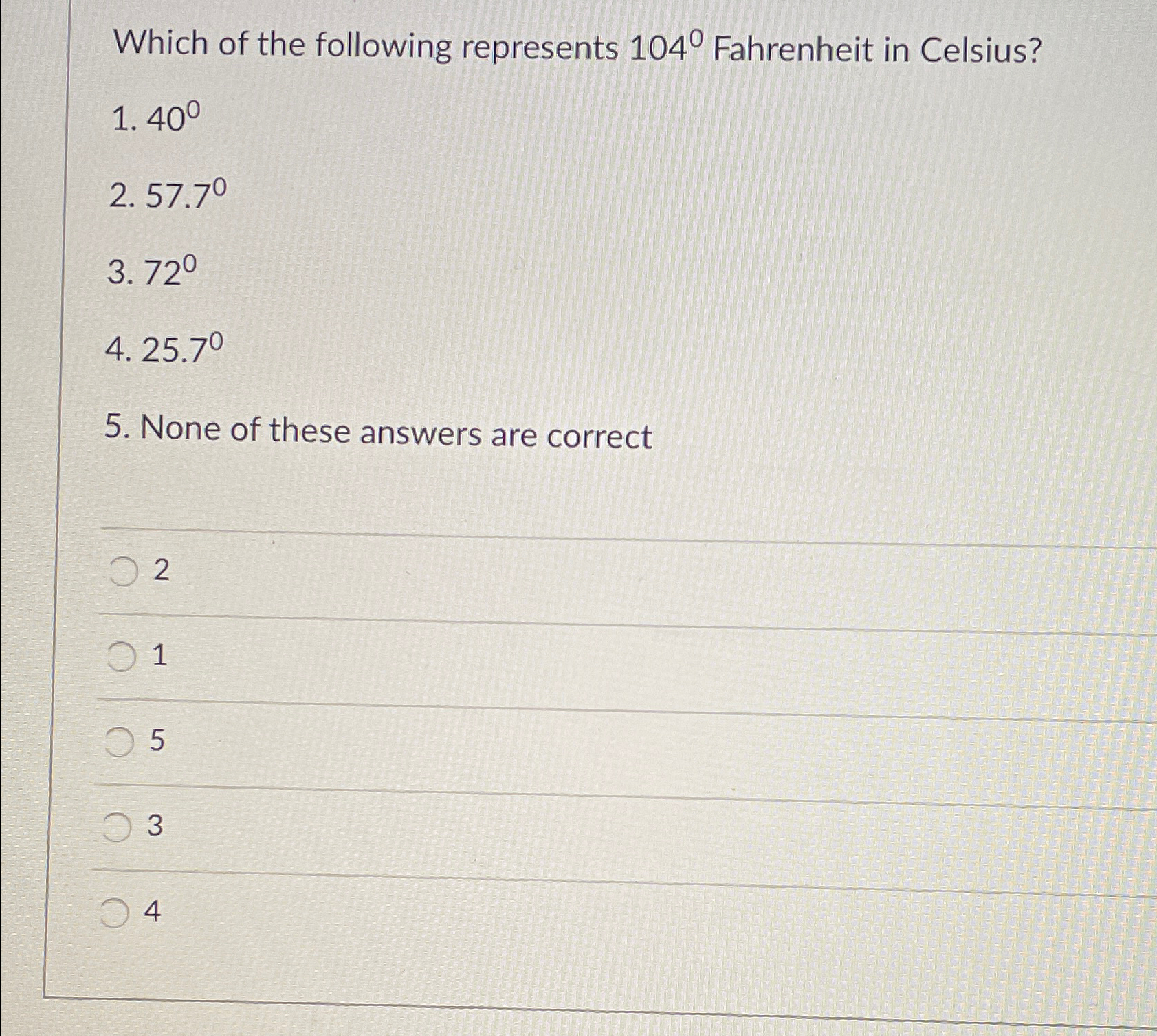 Solved Which of the following represents 104 Fahrenheit in Very well made.