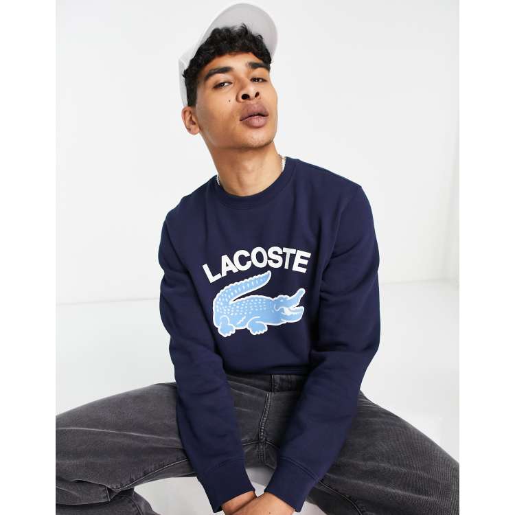 Lacoste large logo crew neck sweatshirt in navy Very well made.