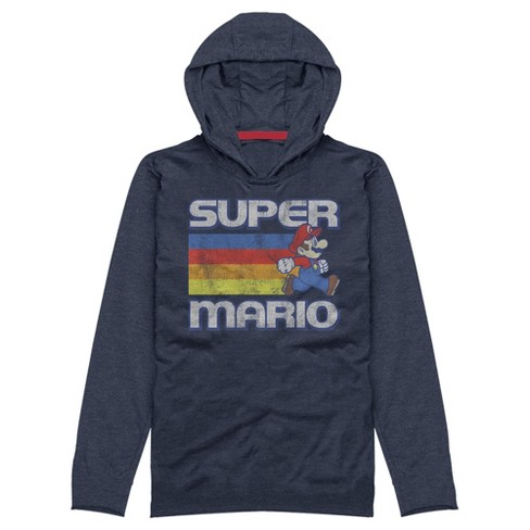 Men s Nintendo Super Mario Rainbow Stripes Pull Over Hoodie Navy Blue X Large Very well made.
