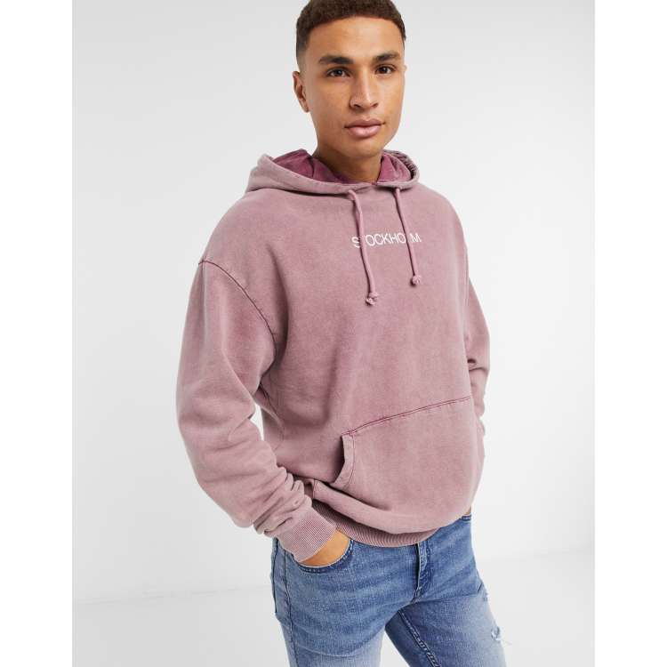 ASOS DESIGN oversized hoodie in red acid wash and city chest print Very well made.