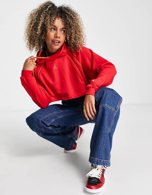 Nike Air Jordan Sport fleece cropped pullover hoodie in fire red and orange Very well made.