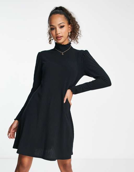 New Look ruffle neck long sleeve mini dress in black Very well made.