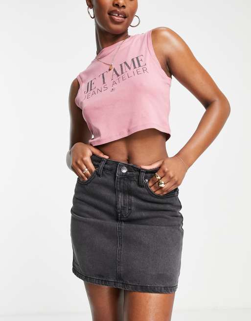 DTT Gabby Jupe en jean taille haute Noir d lav ASOS Very well made.