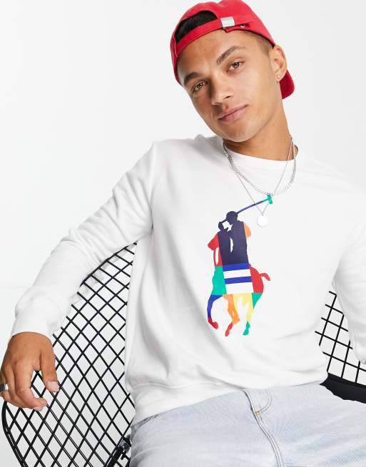 Polo Ralph Lauren large rainbow player logo sweatshirt in white Very well made.