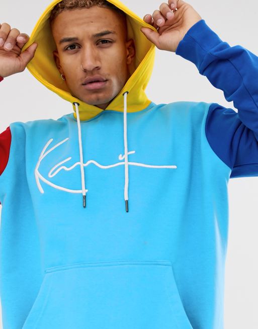 Karl Kani Signature Block hoodie with embroidered logo and contrast sleeves in blue Very well made.