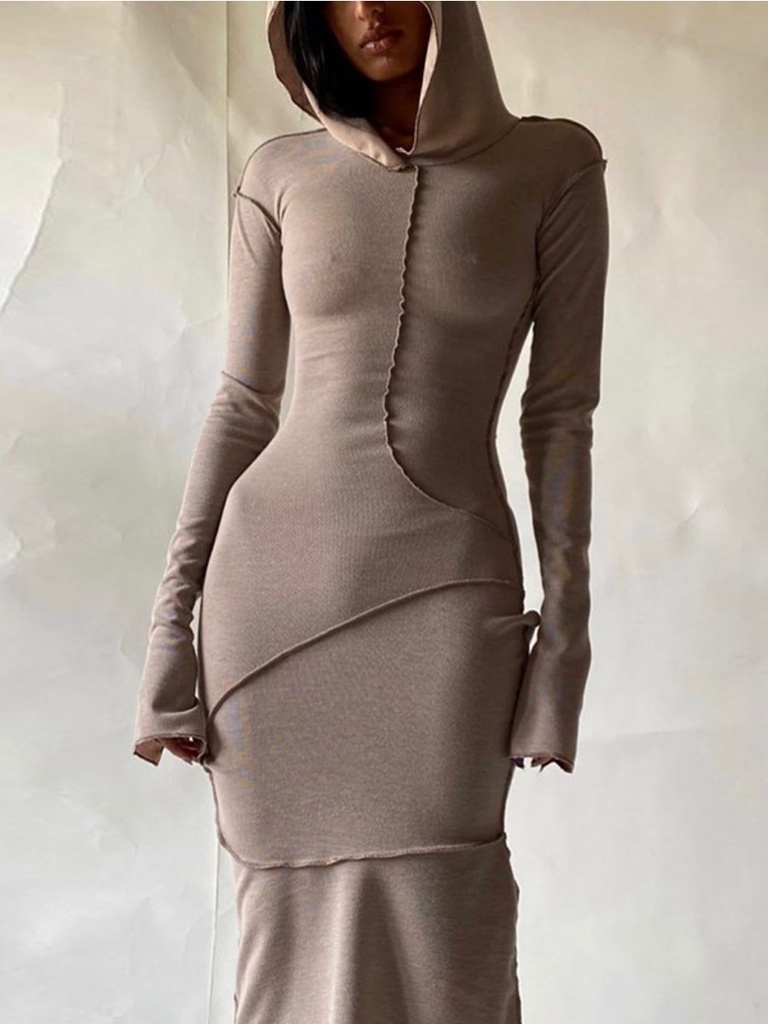 Split Hooded Dress Casual Solid Long Sleeve Bodycon Dress Temu Very well made.