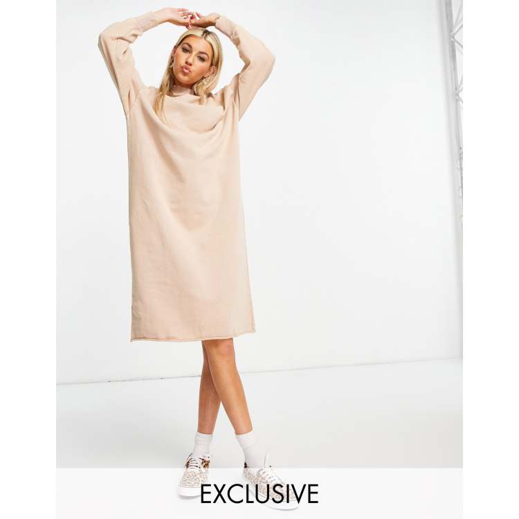 COLLUSION maxi acid wash sweatshirt dress in fawn Very well made.