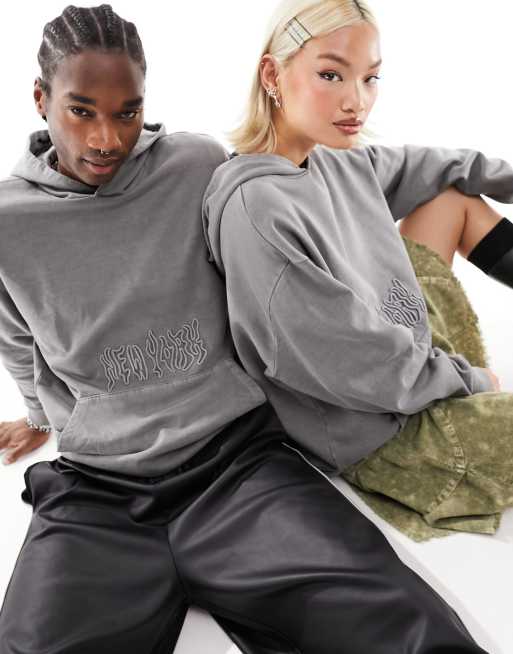 ASOS DESIGN unisex oversized hoodie in washed gray with New York embroidery Very well made.