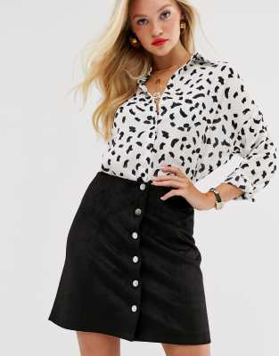 Mango Mini jupe en su dine boutonn e devant Noir ASOS Very well made.