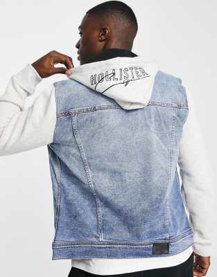 Hollister sweat sleeve hood denim jacket in medium wash gray Very well made.