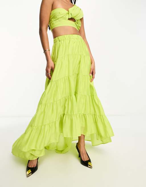 ASOS DESIGN Jupe longue d ensemble en voile volants et ourlet asym trique Vert Very well made.