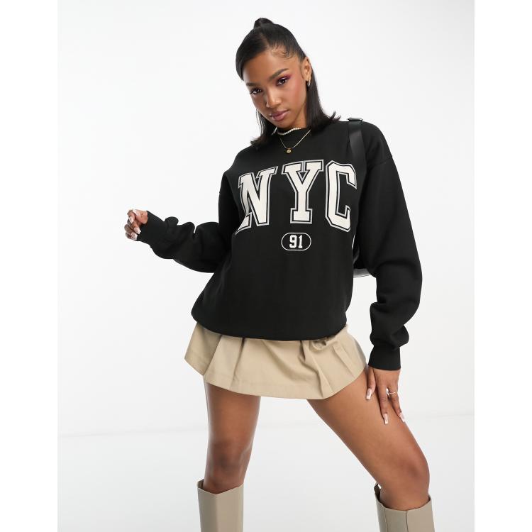 Nyc Slogan Printed Oversized Sweatshirt Very well made.
