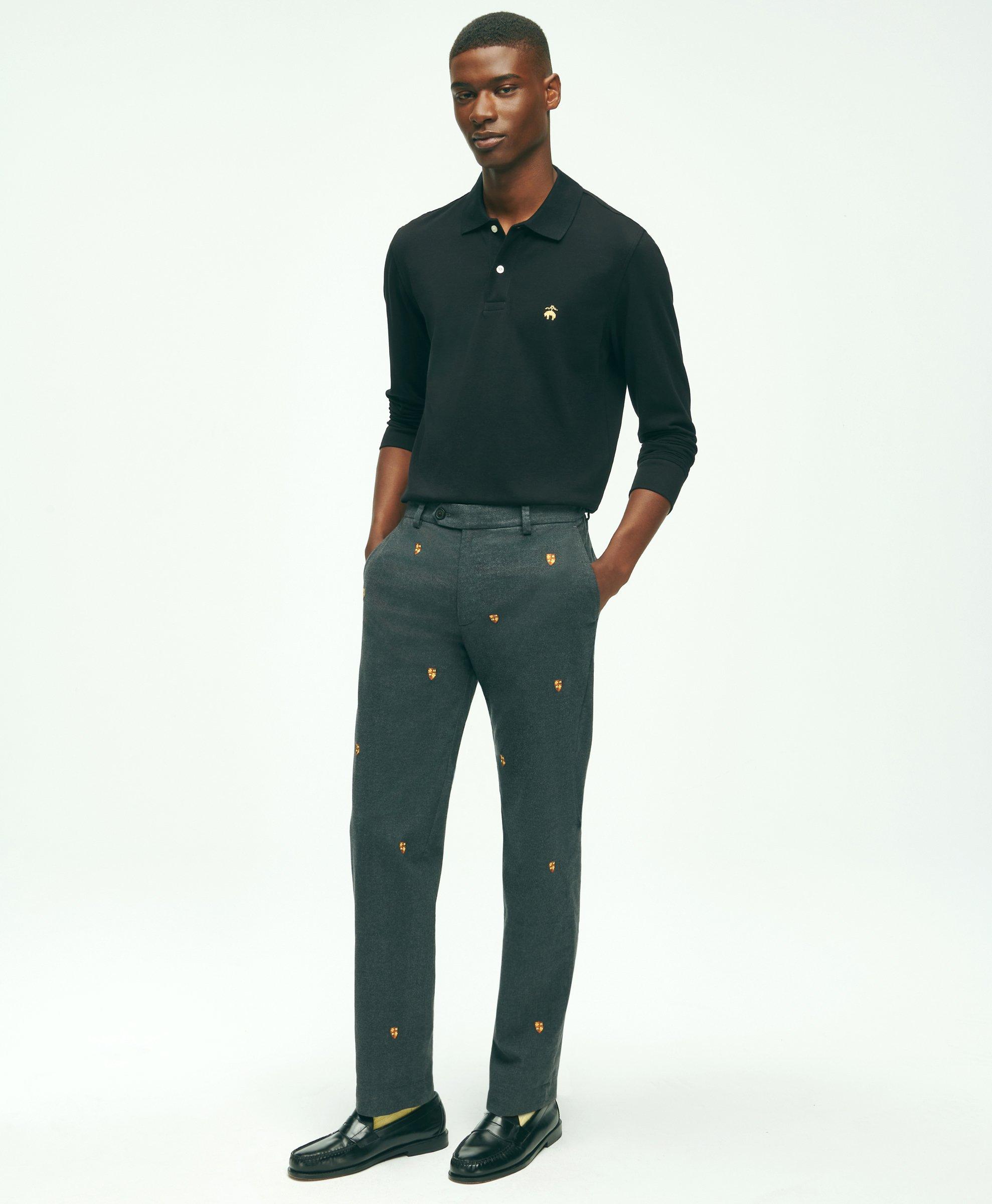 Stretch Cotton Shield Embroidered Flannel Pants Very well made.