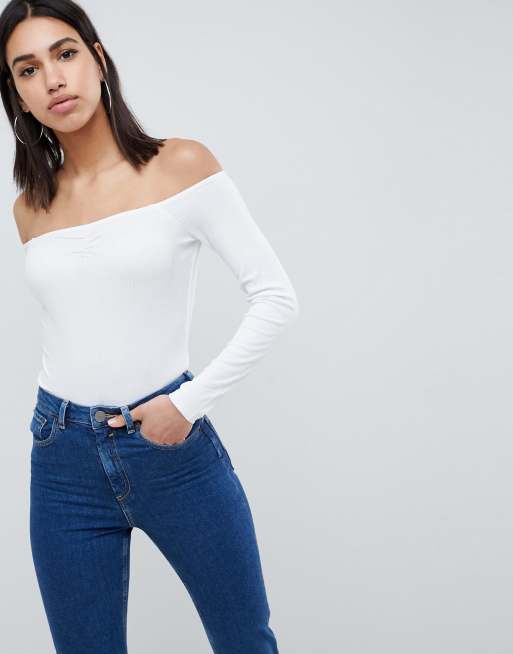 White Ribbed Long Sleeve Bardot Top New Look Very well made.