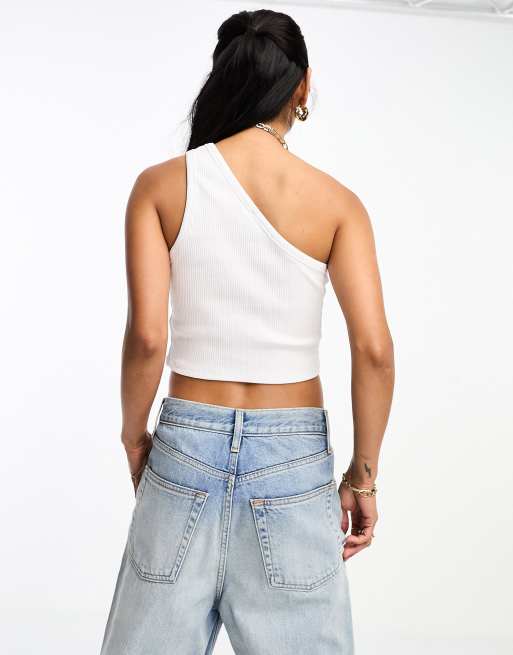 White One Shoulder Ribbed Crop Top sosorella Very well made.