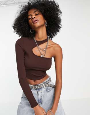 Bershka Ribbed Cut Out Asymmetric Top In Chocolate brown ModeSens Very well made.